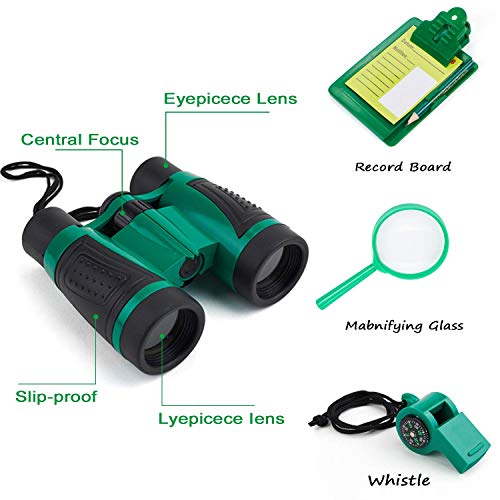【Explorer The Surrounding World】: Binoculars are must-have kids hiking gear items. Featuring rubber eye protection for enhanced safety and a neck strap for easy carrying, the binocular set for kids is lightweight and easy to use. Use the kids binocular set in the camping set for kids to teach them patience and focus.