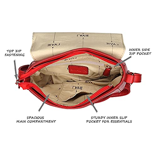 Complete your modish look with this ultra-modern sling bag by Lavie – featuring intricately geometric patterns, individual pockets to organize everyday essentials, and snap fastening for convenient security, this choco piece has been designed to flaunt an alluring appeal. This sling bag is an ideal example of what today’s fashionista deserves: a blend of trend and substance.