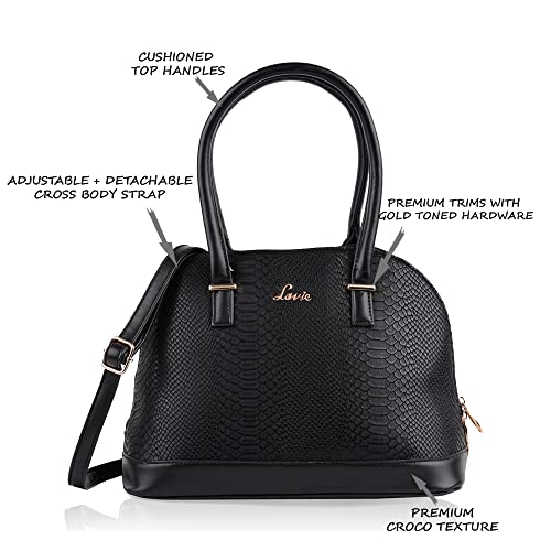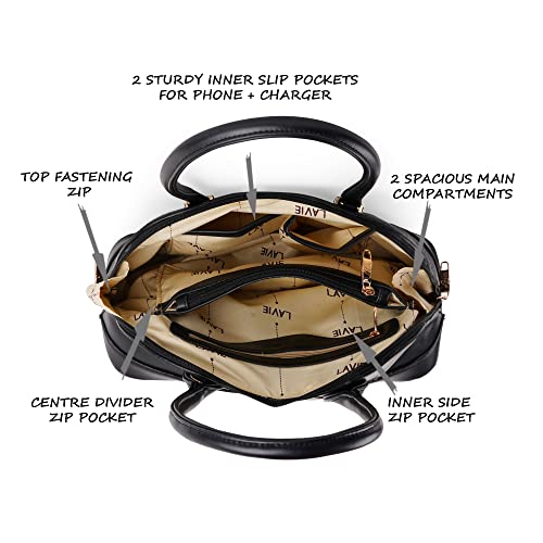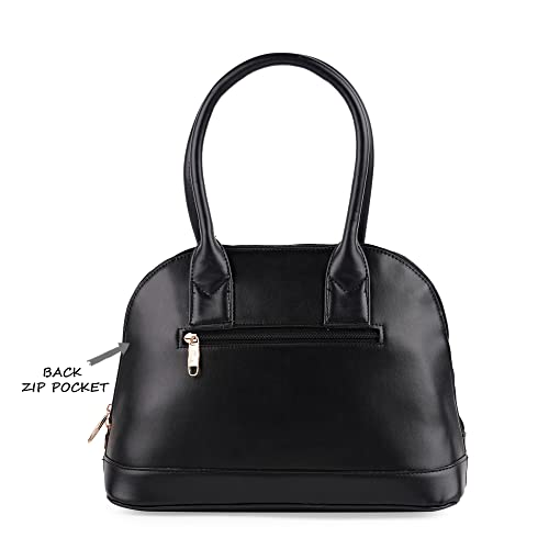 Amp up your style game to a next level with a classy black palazzo, edgy sleeveless top, and a statement earring. Club it with this trendy dome satchel by Lavie to complete your look. Featuring double elbow round straps, smooth sliding zippers and an adjustable and detachable sling belt, this trendy bag opens to two spacious compartments and multiple utility pockets.