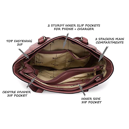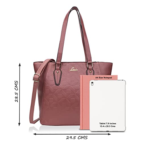 Zarya hand bag has a top zip closure for safety and comfort. The bag is spacious, and the interior has 2 main compartments, divided by an inner zip storage, 2 slip pockets alongside 1 zip pocket, providing plenty of storage space for keeping phone, portable charger, keys, hairbrush, wallet, sunglasses, sanitizer etc. This tote has dual flat shoulder straps fastened with gold toned hardware. The sling straps are adjustable and detachable, which makes it easy to carry in multiple ways.