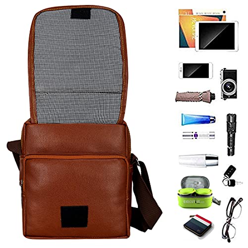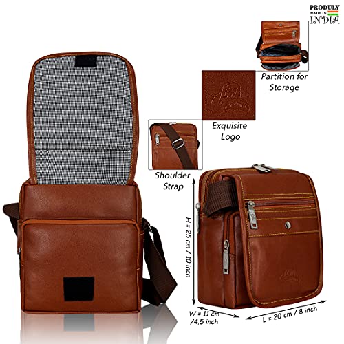 Leather World presents Tan Shoulder Sling Bag designed for Money, Passport, Mobile and other valuables. This is made up of High quality finished PU Leather. This bag has Upper Two Main compartment with zipper closure and 1 pocket in front side and zip for accessories. This bag has a zipper pocket In Inner Side and Back Side. Dimension of this product is 6.5 (L) x 4 (W) x 8 (H) in Inch. This bag is ideal for Men & women for Daily Use.