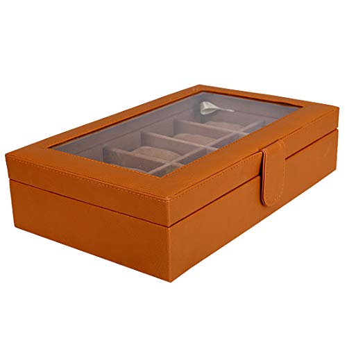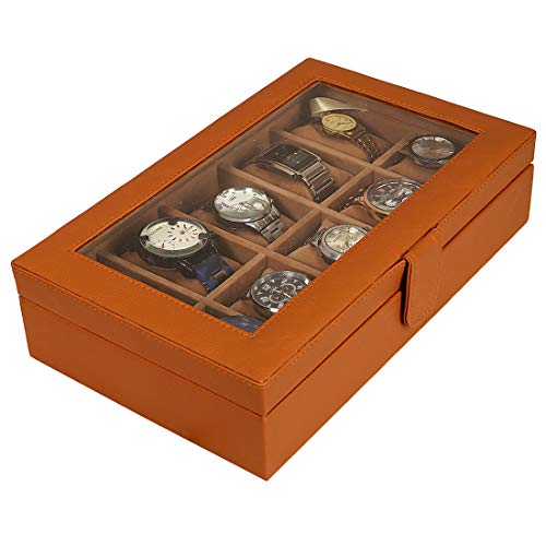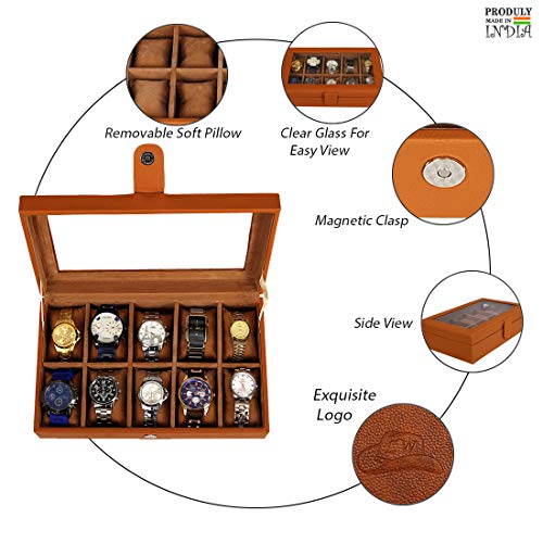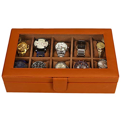 Leather World PU Leather 10 Slots Wrist Watch Box Case Organizer Jewelry Storage for Men and Women (Tan)