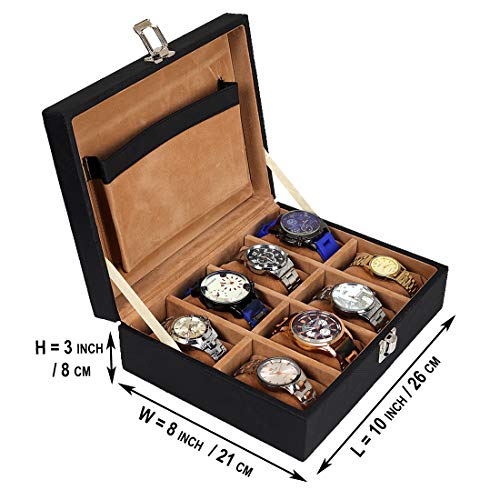Leather World Watch Box Organizer- 8 Slot Watch Storage Holder Display and Jewelry Case Collection Box Vegan Leather with Black for Men and Women – Travel Friendly Box for Gifts for men | Rakhi Gifts | VDay gifts | Latest Men’s watch case Organiser