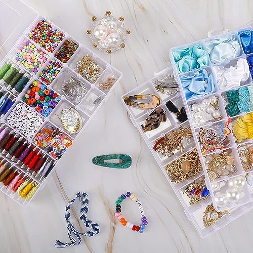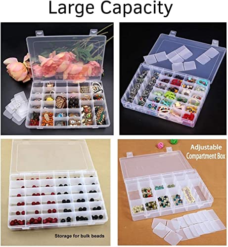 Leawall Plastic 36 Grid Cells Multicolorpurpose Jewelry Organizer Rectangular Storage Box, with Adjustable Dividers, Transparent Storage Organizer Box for Jewelry Beads Earring