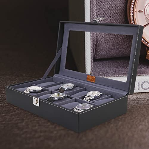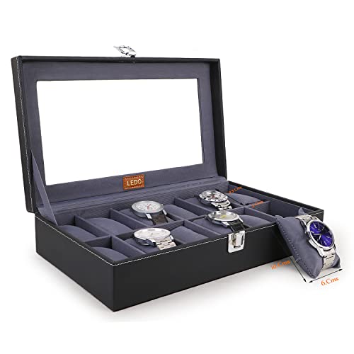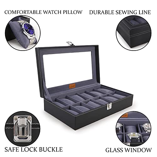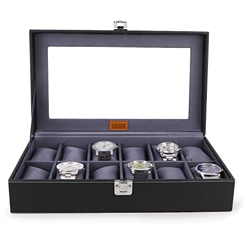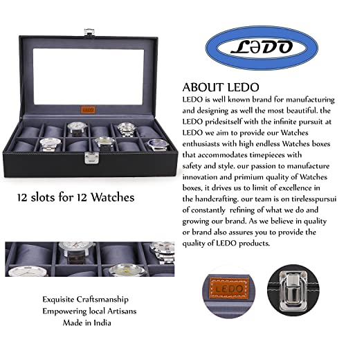 LEDO Men’s and Women’s Watch Box Holder Organizer Case In 12 Slots of watches In PU Leather with Black & Gray