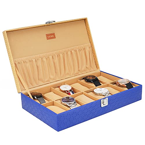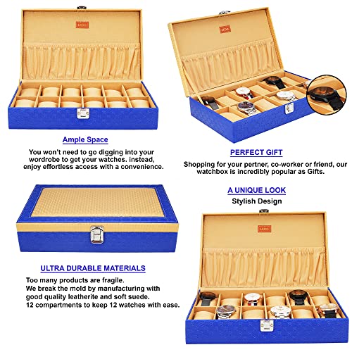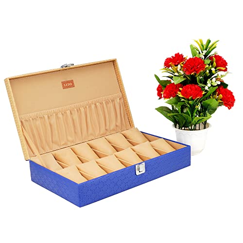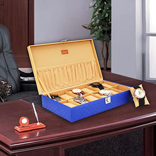 LEDO Watch Box Holder Organizer Case for Men and Women in 12 slots of Watches in Blue Color