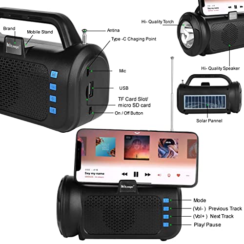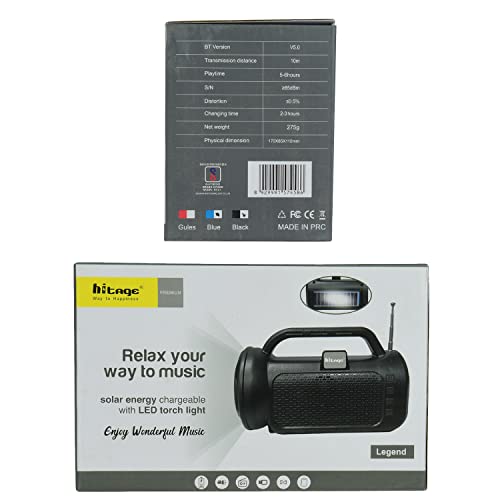HITAGE BRAND BLUETOOTH LEGEND SOLAR CHARGING SPEAKER Enjoy signature loud 10X10Watt sound without any distortion, sound engineered using Listen Technologies USA devices.Bluetooth speaker is the ultimate premium ABS build – for portability and ease of use. Due to the light and sleek design carry your speaker on the sweat Proof . Quick connect your devices with this portable speaker without any lag with Bluetooth 5.0 technology. 5-6 hours long more battery life with type C input, now listen to your music without worrying about power with the. Multiple inputs of Bluetooth, AUX & Micro SD to keep you connected YOUR way. Comes with a 1-Month warranty to Manufacturing Defects specialists.