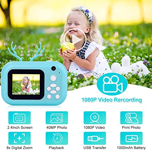 Leqtroniq 40MP Instant Digital Camera for Kids with Print Paper, Child Video Camcorder & Selfie Camera Toy 2.4 Inch Screen & 32GB TF Card (Sky Blue)