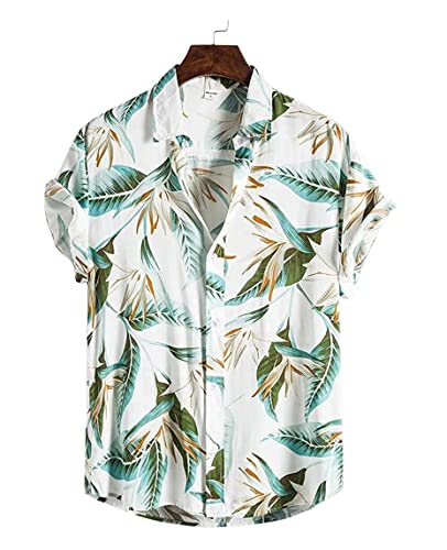 Leriya Fashion Shirt for Men | Tropical Leaf Printed Rayon Shirts for Men | Preppy Short Sleeves | Spread Collared Neck | Perfect for Outing | Beach | Camp Wear Shirt for Boys