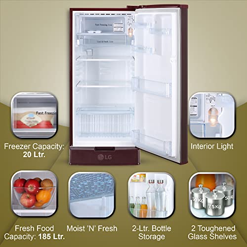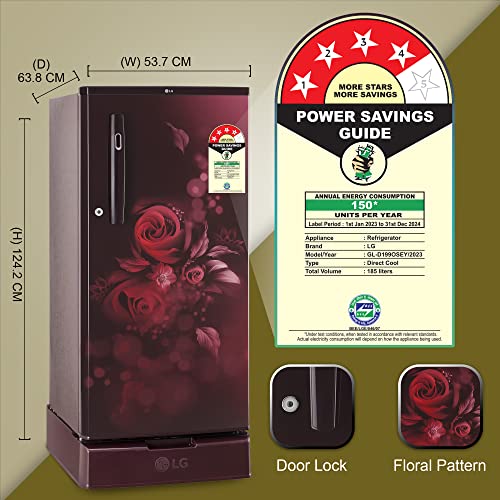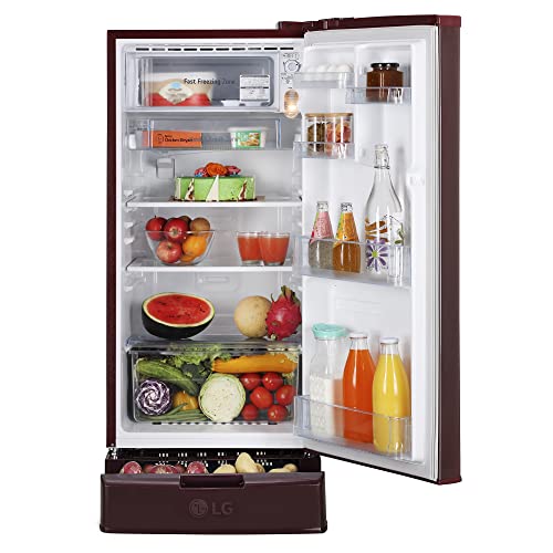 LG 185 L 4 Star Inverter Direct-Cool Single Door Refrigerator (GL-D199OSEY, Scarlet Euphoria, Base stand with drawer)