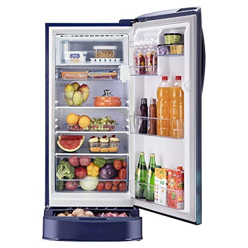 LG 201 L 5 Star Inverter Direct-Cool Single Door Refrigerator (GL-D211HBCZ, Blue Charm, Base stand with drawer)