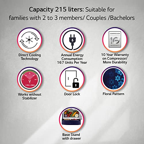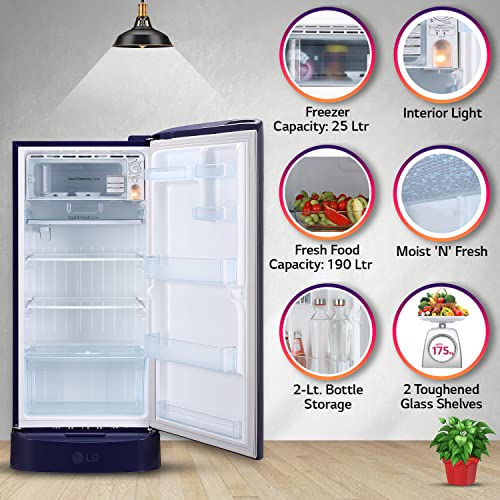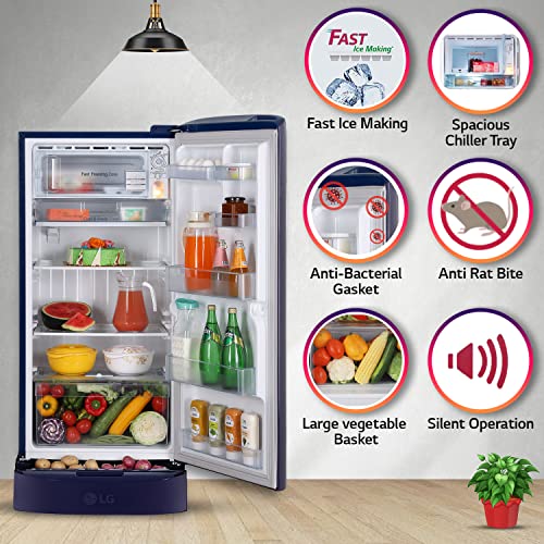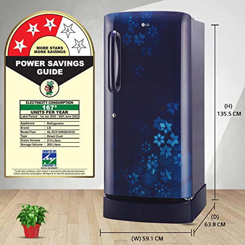 LG 215 L 3 Star Direct-Cool Single Door Refrigerator (GL-D221ABQD, Blue Quartz, Base stand with drawer & Moist ‘N’ Fresh, 2022 Model)