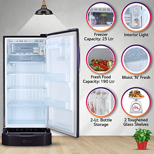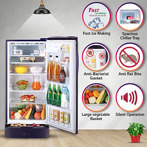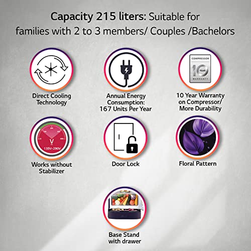 LG 215 L 3 Star Direct-Cool Single Door Refrigerator (GL-D221APVD, Purple Victoria, Base Stand with drawer, 2022 Model)
