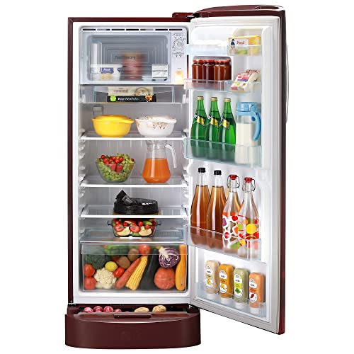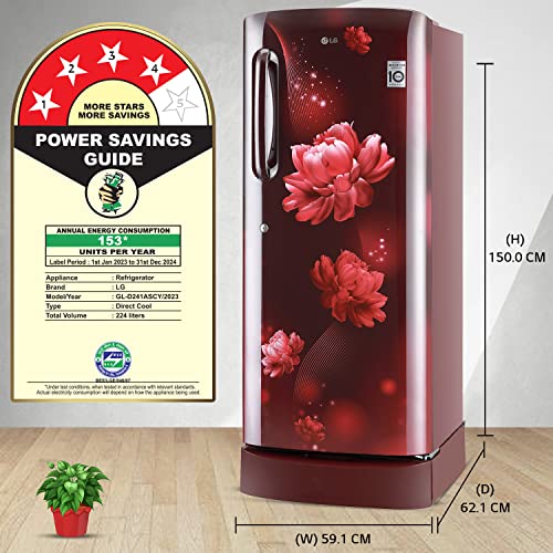 LG 224 L 4 Star Inverter Direct-Cool Single Door Refrigerator (GL-D241ASCY, Scarlet Charm, Base stand with Drawer, Total capacity -235 L)