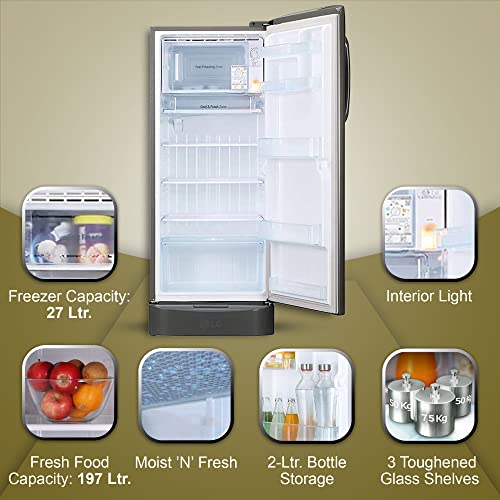 Capacity 224 liters: Suitable for families with 3 to 4 members and bachelors| Freezer capacity: 27L, Fresh food capacity: 197L