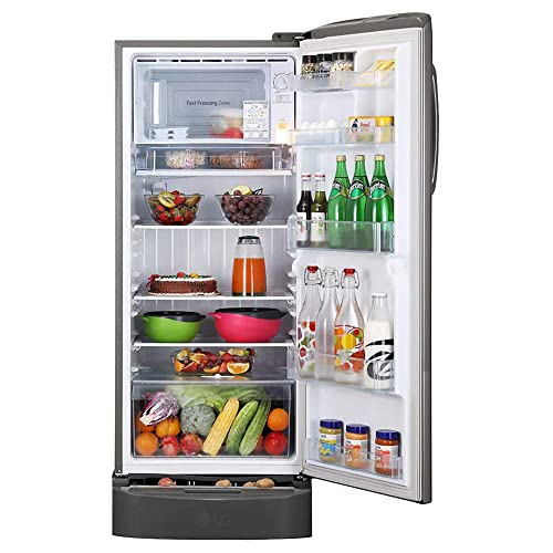 LG 224 L 5 Star Inverter Direct-Cool Single Door Refrigerator (GL-D241APZU, Shiny Steel, Base stand with drawer)