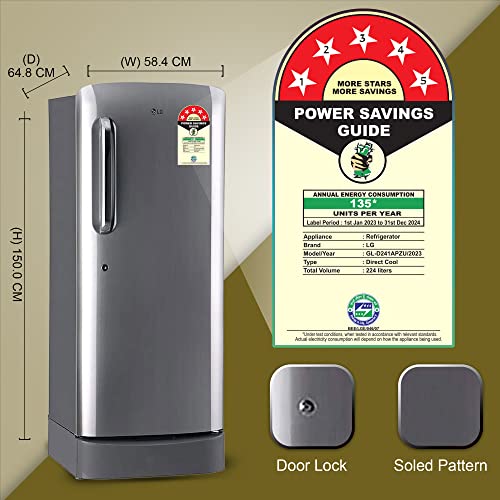 Be the first to review “LG 224 L 5 Star Inverter Direct-Cool Single Door Refrigerator (GL-D241APZU, Shiny Steel, Base stand with drawer)”