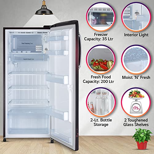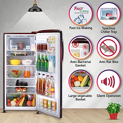 LG 235 L 3 Star Direct-Cool Single Door Refrigerator (GL-B241ASVD, Scarlet Victoria, Fast Ice Making, 2022 Model)