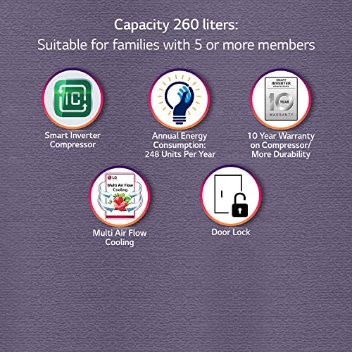 LG 260 L 2 Star Frost-Free Smart Inverter Double Door Refrigerator (GL-N292RRRY, Ruby Regal, Multi Air Flow, 2022 Model)