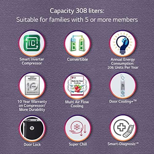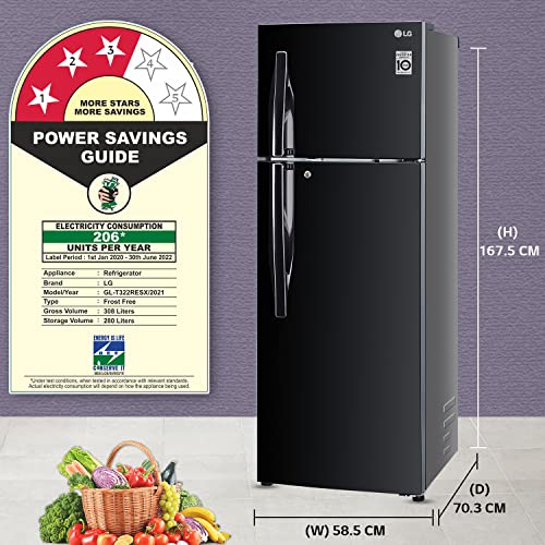 LG 308 L 3 Star Frost-Free Smart Inverter Double Door Refrigerator (GL-T322RESX, Black, Ebony Sheen, Door Cooling+ with Convertible, 2022 Model)