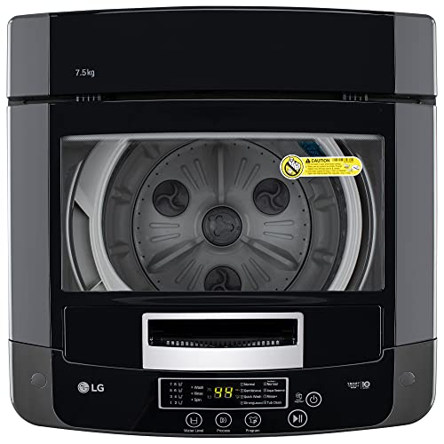 LG 7.5 Kg 5 Star Smart Inverter Fully-Automatic Top Load Washing Machine (T75SKMB1Z, Middle Black, TurboDrum | Smart Motion)