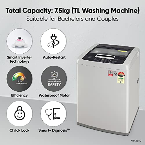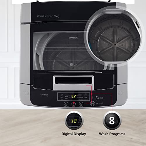 LG 7.5 Kg 5 Star Smart Inverter Fully-Automatic Top Load Washing Machine (T75SKSF1Z, Middle Free Silver, TurboDrum | Smart Motion)