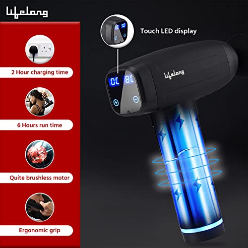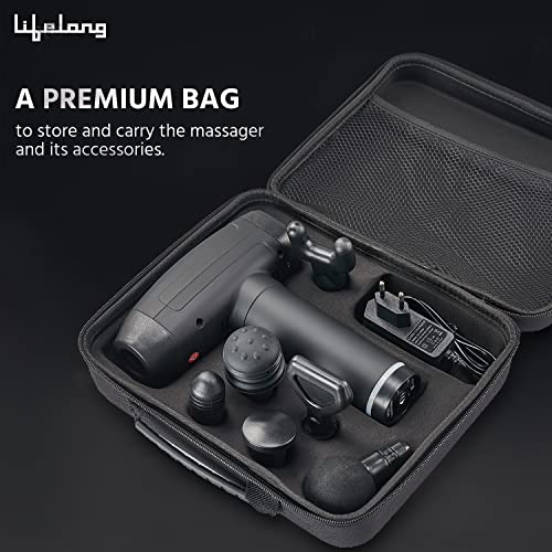 Lifelong Gun Massager Deep Tissue Body Massage Machine For Pain Relief | 6 Specialized Heads | LED Touch Panel |3000 Stroke per min| 30 Speed Level Massager Machine For Full Body with Premium Carry Bag (1 Year Warranty, Black,LLGM09)