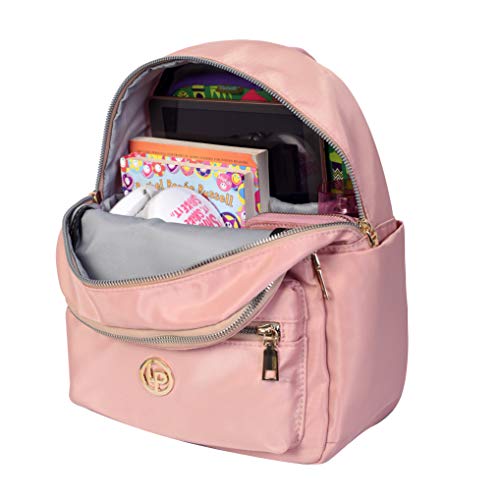 This light pink backpack is done in an entirely durable synthetic woven fabric to give it a chic, sporty look. It is really roomy and lightweight so you can carry in your gym stuff or regular basics. The front zipped pocket is perfect for your small or medium size essentials like wallets,small purse, keychains etc. and the main zipped pocket offers a mini tab or ipad compartment and is spacious enough to hold utilities, hence, it can also be used as a travel bag for small journeys. Metallic gold trims detailing adds charm to this shoulder bag. Moreover, there is a provision of small back zipper for theft free usage and side pockets to carry mini water bottles. The branded Lino Perros handbag collection are a must have for all the girls,ladies and women.