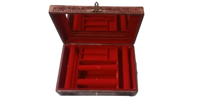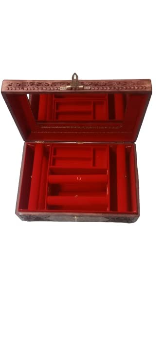 This stylish wooden jewellery box is full hand made by our craftsmen. Wood used in wooden jewellery box is seasoned wood with high finishing. Hand Made Products Design May Liittle Vary.
