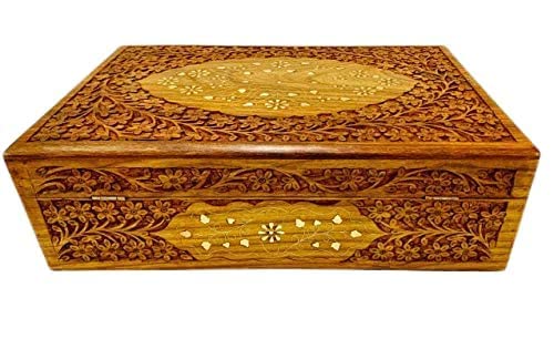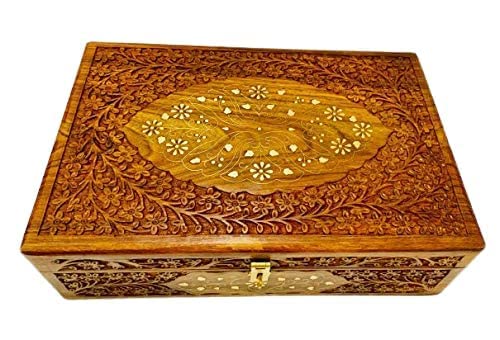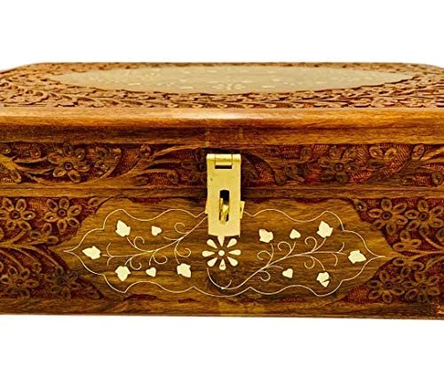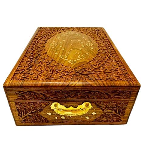 Linquard Collection Store -is focused on upgrading the living standards of craftsmen and their families. We buy and manufacture at a genuine purchase price to help the craftsmen. At the point when you first look at these handmade jewelry/ utility box, you will see a beautiful masterpiece of craftsmanship. Made by craftsmen of Saharanpur. Handmade Wooden Jewellery Box Handmade Wooden Premium 12 Inch Handcrafted Rose Wood Jewellery Utility Box Jewel Organizer with Hand Brass Carving Work.