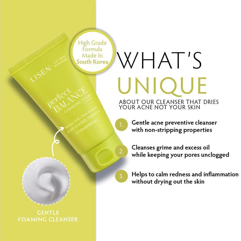 LISEN 0.5% Salicylic Acid Acne Control Face Wash for Oily, Sensitive & Pimple Prone Skin for Men & Women | Reduce Redness with Plant Extracts | Paraben & SLS Free| Korean Skin Care Product |120ml