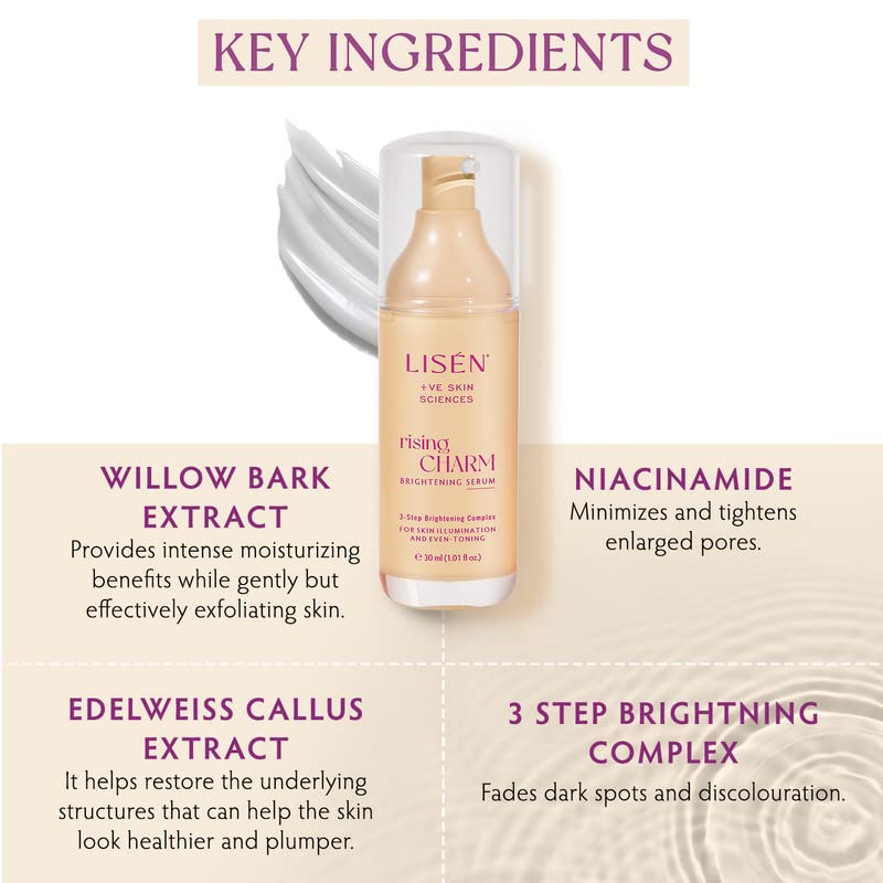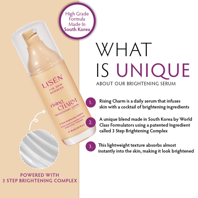 LISEN Brightening Face Serum for Dark Spots, Uneven Skin Tone & Dullness with Niacinamide for Men & Women | Paraben & SLS Free | Rising Charm Serum For All Skin Types | Korean Skin Care Product |30ml