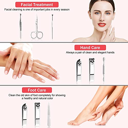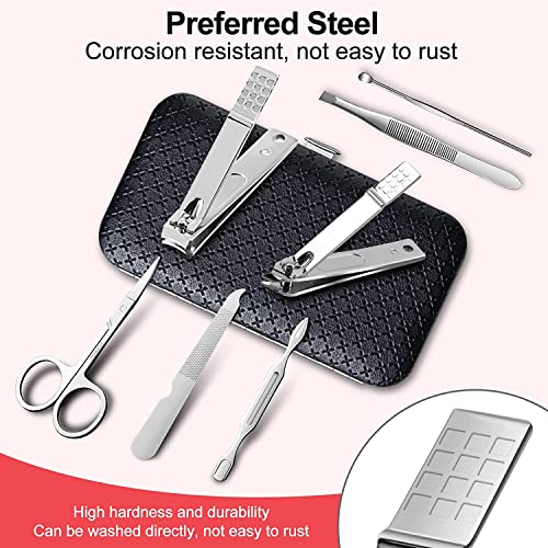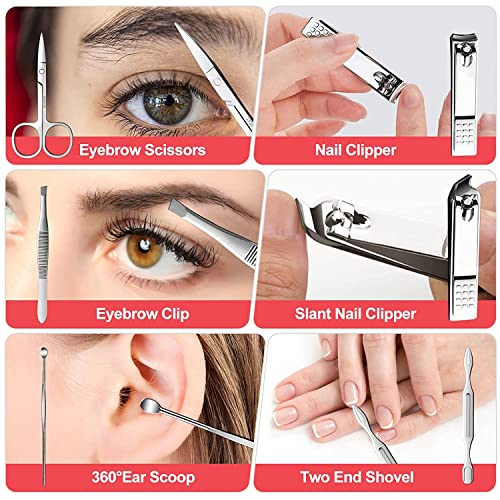 2022 New Upgraded 7 in 1Manicure Set】 Professional Manicure Kit Contains toenail and nail tools , the main functions are including hand care,foot care,Ear care,facial care. Includes toenails clipper, fingernails clipper, multi-purpose scissor, ear pick, eyebrow tweezer, nail file, nail cleaner. 【High Quality & Delicate Design】 Made of professional surgical grade Stainless Steel, very durable, safe sterilization, prevent corrosion and minimize risk of infections. Each part is carefully designed and sculpted, in line with human hand and non-slip design. We are committed to providing you with a comfortable and healthy life. 【Portable and Lightweight】Comes with a portable synthetic leather case(11*7*1.5cm) that can be opened by tapping the switch on the box. The compactly designed size of the leather case makes it highly convenient to carry, can fit into almost any handbags or shoulder bags. 【Personal Care Gifts】 Manicure Kit with a gorgeous leather suit ,it is practical、fashionable and popular with family and friends.It is the best gift for friends, parents, husband and wife. 【12 MONTH MONEY BACK GUARANTEE】12 MONTH MONEY BACK GUARANTEE: Any problems, please contact us to get a 100% satisfied solution — all MUIIGOOD Product come with a 12 month 100% refund or replacement guarantee. ORDER NOW with ZERO RISK!