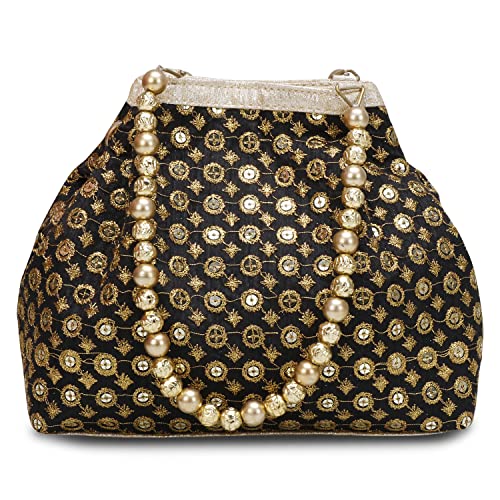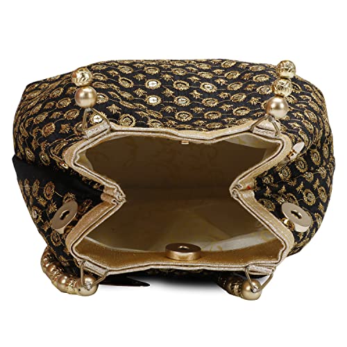 The extravagant style of Rajasthan, India comes to life through rich colors, lavish embroidery and sequins that emulate the region’s traditional appliqué. A very unique stone golden border on rich velvet material Potli bag. This Gorgeous Potli bag will be definitely compliment for any occasion. This Potli bag will be the best option for return gift. You can put dry fruits, chocolates etc. and gift to your friends and relatives.