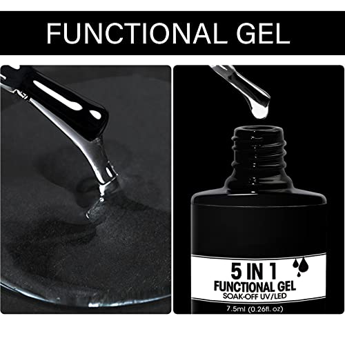 5 in 1: Clear Nail Gel, professional base coat, top coat, strengthen nail, nail extension, sticking nail decoration.