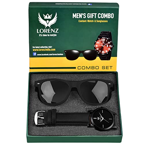 LORENZ Analogue Black Dial Men’s Watch & Wayfarer Sunglasses Combo for Men |Gift Combo Set for Men & Boys (CM-103SN)