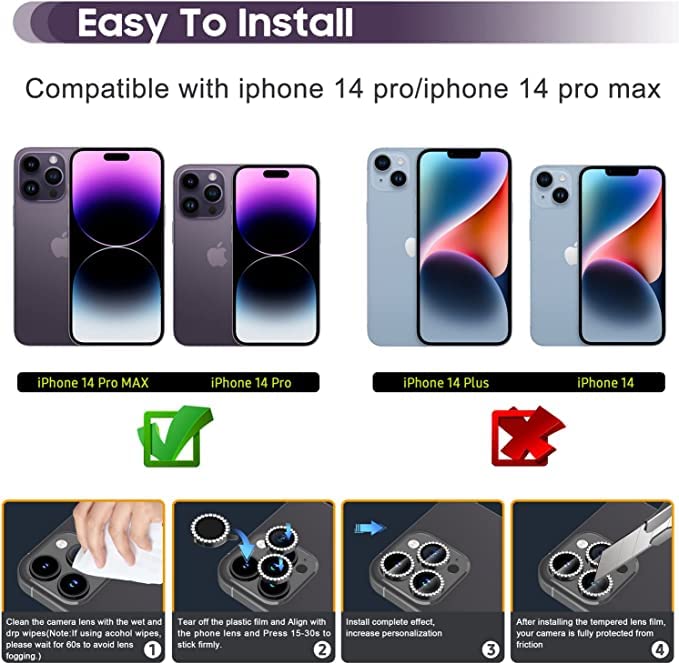 The unique design of lens protector precisely and securely fit, making your phone more attractive. Different color lens protector ring meet your needs,The package includes 2 pieces of camera cover ring. Easy to install, no bubbles, case friendly, leave no residue after removed