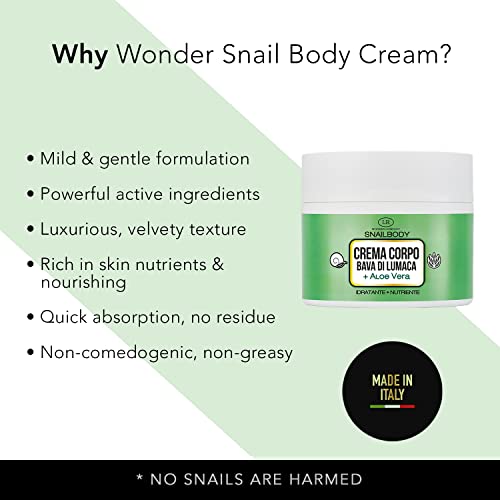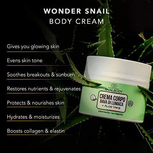 LR Wonder Company Snail Mucin Rejuvenating Body Cream for Glowing Skin – 200 ml | Moisturizer for Dry & Sensitive Skin, Soothes Sunburn, Breakouts with Aloe, Shea Butter, Almond Oil | Italian Skincare