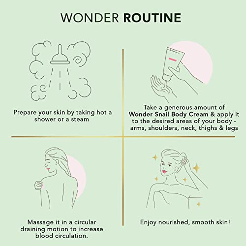 Indulge your body in a daily dose of soothing care with our luxurious Wonder Snail Anti-Blemish Nourishing Body Cream, crafted with effacious Snail Mucin, nourishing Aloe Vera, moisturizing Shea Butter, Almond Oil & Vitamin E. Its powerful hydrating, nourishing & soothing action restores freshness, softness & elasticity to even the driest & dullest of skin. What makes it unique, is the natural healing effect of Snail Mucin which helps reduce scars & spots for blemish-free skin.