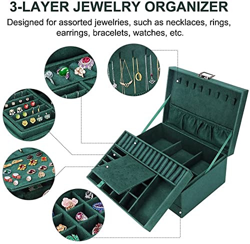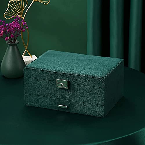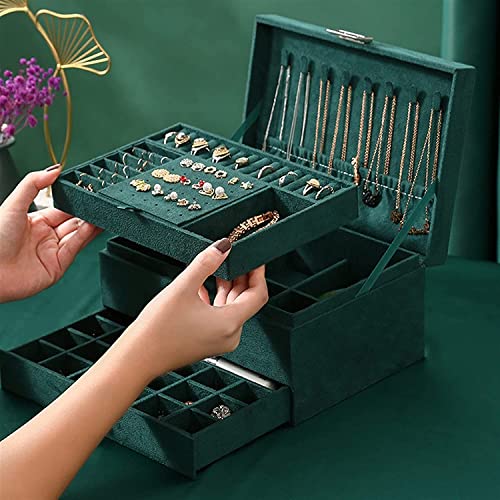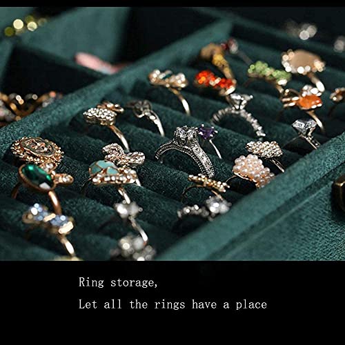 Lucario Easy-To-Use Jewelry Storage Box New 3layers Green Flannel Stud Jewelry Organizer Large Ring Necklace Makeup Holder Cases Velvet Jewelry Box with Lock Women (Color : Green)