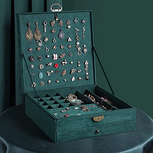 Lucario Women Jewelry Box Lockable 3 Layers Large Jewelry Organizer Storage Case for Earrings Necklaces Rings Bracelets,Green Display Jewel Holder (Green)