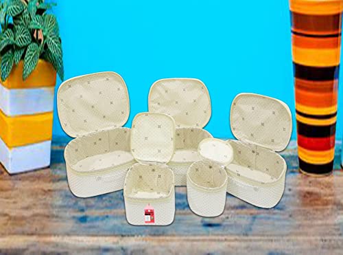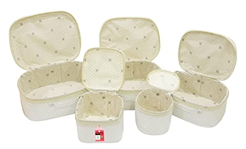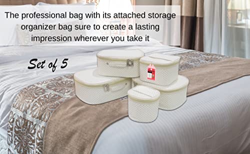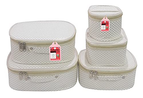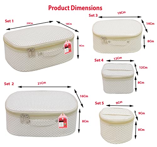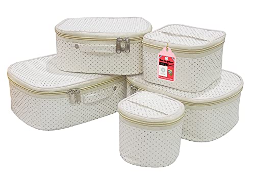 Luces 5 Pc Different Sizes Fabric Bag Set Purse Makeup Bag Toiletry Travel Cosmetic Storage Box Shaving Kit Wardrobe Organizer Jewellery Pouch for Women (Cream)