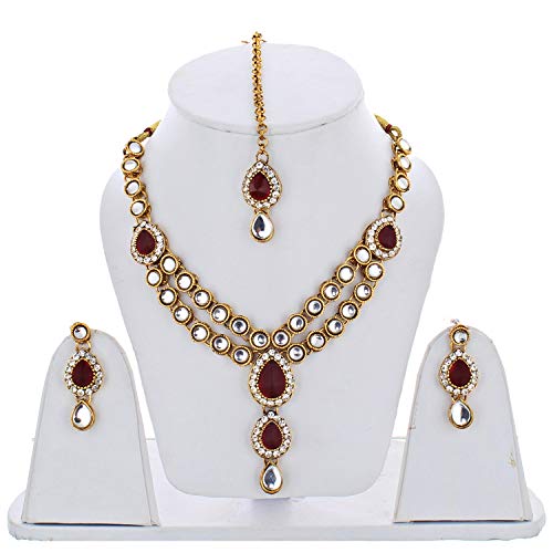 Be the first to review “Lucky Jewellery Designer Kundan Stone Double Locket Necklace Set with Earring and Tikka for Girls & Women”