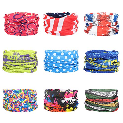 Suitable for Different Occassion and Season:9Pcs head wrap different color give you multi choices . In winter–To as an extra layer of warmth for your ears, nose, mouth, head, hand and neck in cold day. So you really need the Headwears to keep your health in outdoor activitie;In summer–Scarf bandanna headband wicks away moisture faster to keep you dry, rock the head/neck/wrist to protect yourself from the sun.You will never be disappointed with it.