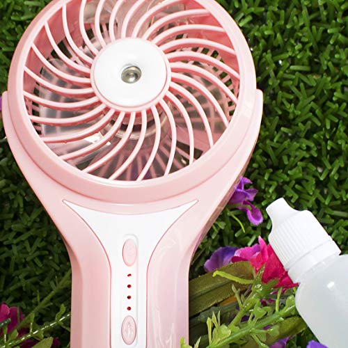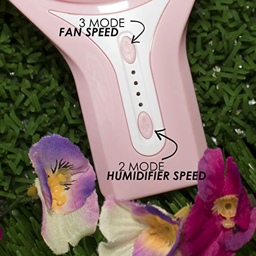 LuxLumi Tropic Humidifier Fan Spray Misting Portable Personal Handheld with Rechargeable Battery Operated for Travel Kids Teen Camping Festival Gear for Women Hiking Men Wellness (Pink)