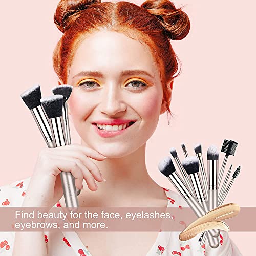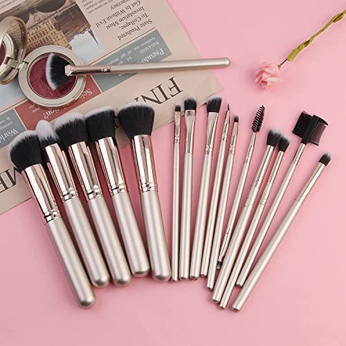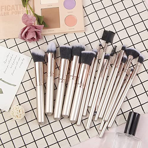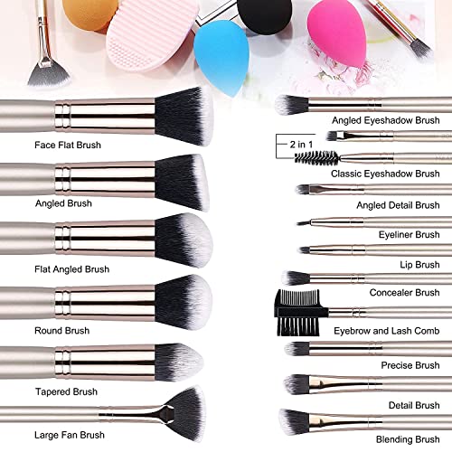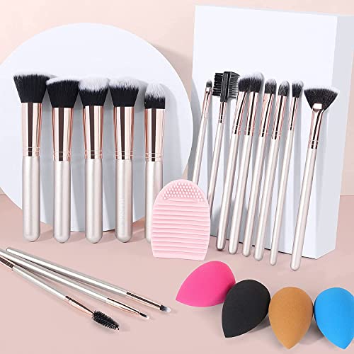 MAANGE Makeup Brushes 16 Pcs with Makeup Sponges 4 Pcs and 1 Brush Cleaner Kabuki Foundation Brush for Liquid Eye Make Up Brush (Champagne Gold)
