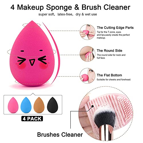 4 Makeup Sponges & Brush Cleaning Pad: The sponge uses a classic water drop design. Perfect for all kinds of cosmetics, such as foundation, BB cream, powder, concealer, isolation, liquid, etc. The durable cleaning pad can be reused, allowing you to better clean and protect the makeup brush.
