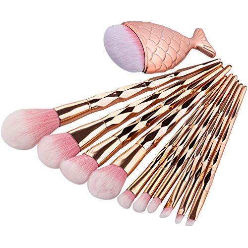 MACPLUS Diamond Cut Handle Makeup Brush Set with Big Fish Tail for Foundation/Eye Shadow/Lips – 11 Pieces