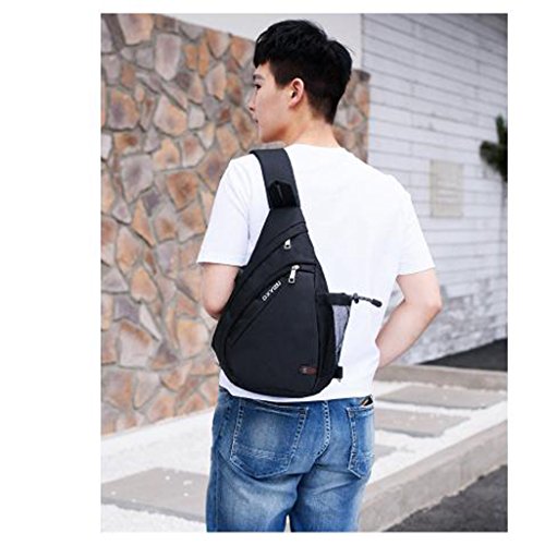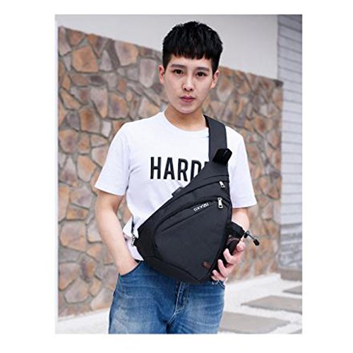 MagiDeal Sling Bag with USB Charging Port Crossbody Canvas Chest Bag Travel Gear Camping Hiking School Backpack for Boys Girls
