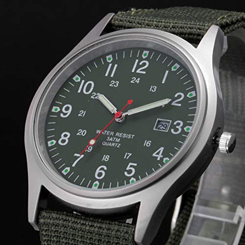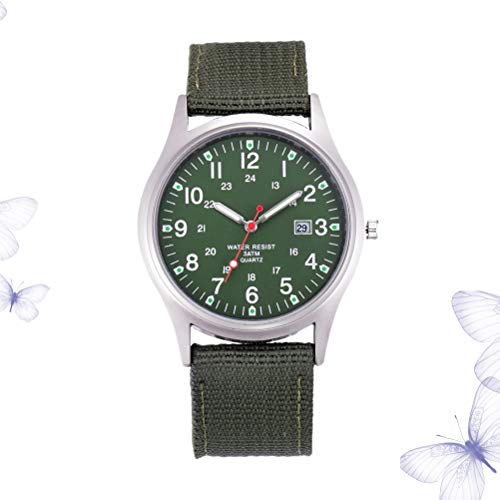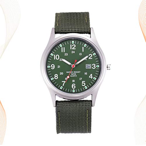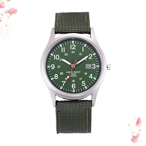 Male Watch 1Pc Fashion Men Quartz Watch Calendar Dial Canvas Band Wrist Watch Durable Male Watch (Green)